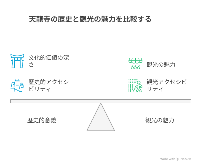 アクセス面では、JR嵯峨嵐山駅から徒歩10分ほどと比較的行きやすく、周辺には竹林の小径や渡月橋といった観光地も充実しています。