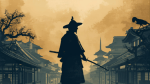 たとえば、モダンなレンガ造りの建物と、時代遅れともいえる武士の姿が同じフレーム内に収まることで、視覚的なギャップを演出。
