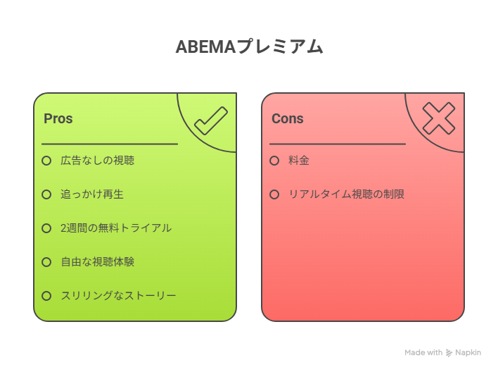 • ABEMAでは無料視聴OK。ただし見逃し配信や広告なし視聴プレミアムがおすすめ
