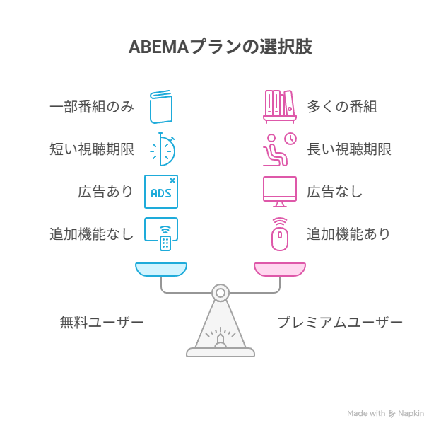 ただし、利用できる機能や視聴のしやすさはどのプランを使っているかによって異なるため、ここでは「見逃し配信の基本」と「ABEMAプレミアムとの違い」をしっかり整理していきます。