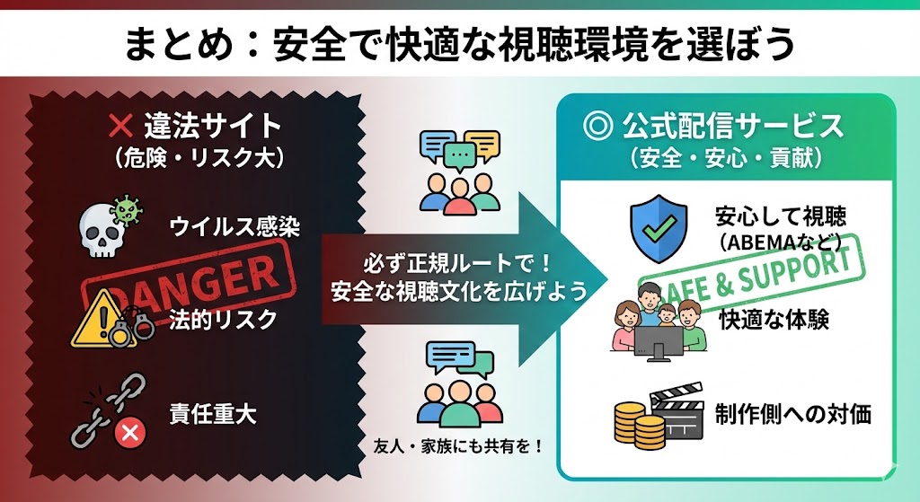 そして、周囲の友人や家族にもこの情報を共有することで、安全な視聴文化を広げる一歩となります。