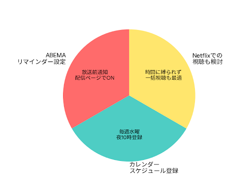 見逃しがちな人は、ABEMAのリマインダー機能やアプリの通知設定を利用するのが効果的です。