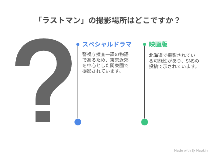 一方、もしSNSなどで「北海道でラストマンの撮影を見た!」という情報を見かけた場合、それはスペシャルドラマではなく映画版の撮影である可能性が極めて高いです。この違いについては後ほど詳しく解説します。