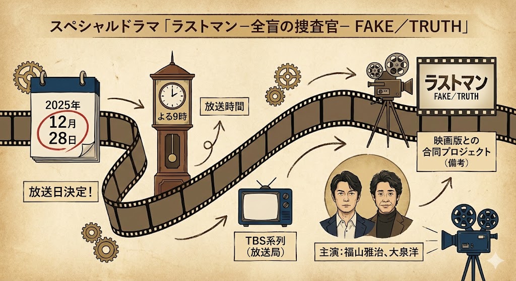 待望の完全新作スペシャルドラマ『ラストマン-全盲の捜査官- FAKE/TRUTH』が、2025年12月28日(日)の夜9時からTBS系で放送されることが決定しました。