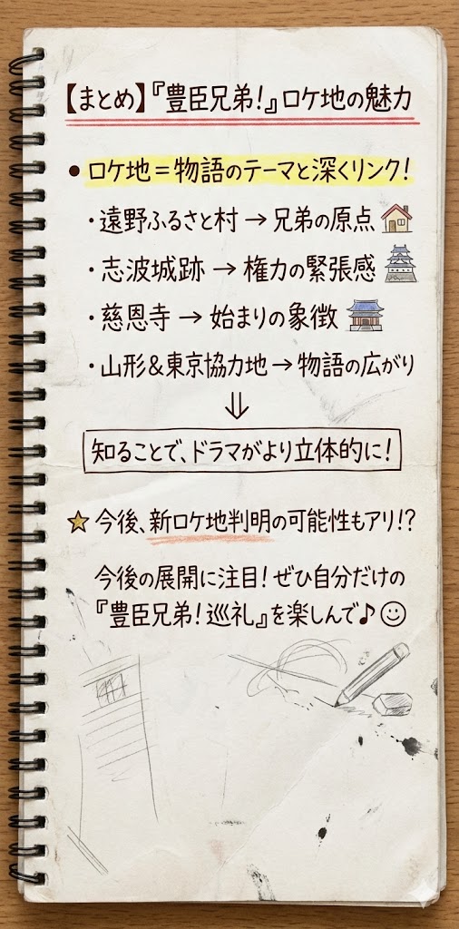 今後の展開に注目しながら、ぜひ自分だけの「豊臣兄弟!巡礼」を楽しんでみてください。
